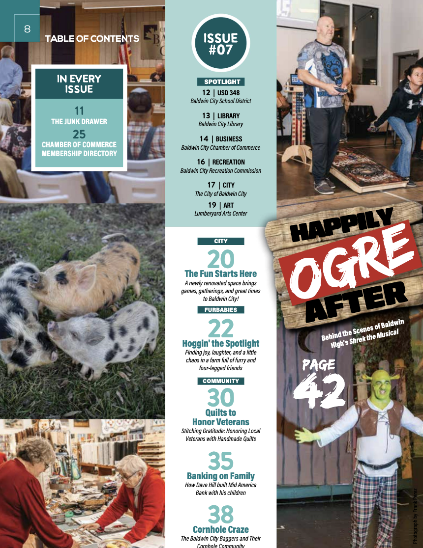 Baldwin City Baggers, Quilts for Veterans, Shrek the Musical, and more!